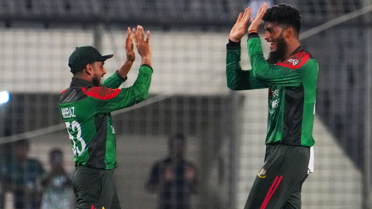 બાંગ્લાદેશની બેટિંગ ઇનિંગ પણ લાજવાબ રહી. ટોસ જીતીને પ્રથમ બેટિંગ શરૂ કરનાર બાંગ્લાદેશે 50 ઓવરમાં 7 વિકેટ ગુમાવીને 213 રન બનાવ્યા. ઓપનર સૌમ્ય સરકારે 45 રન બનાવ્યા, અને યુવા ઓલરાઉન્ડર રિશાદ હુસૈન માત્ર 14 બોલમાં 39 રન બનાવીને ટીમને સન્માનજનક સ્કોર સુધી પહોંચાડ્યો. કેપ્ટન મેહદી હસન મિરાઝે 32 રન અને નુરુલ હસે 23 રનનું યોગદાન આપ્યું.