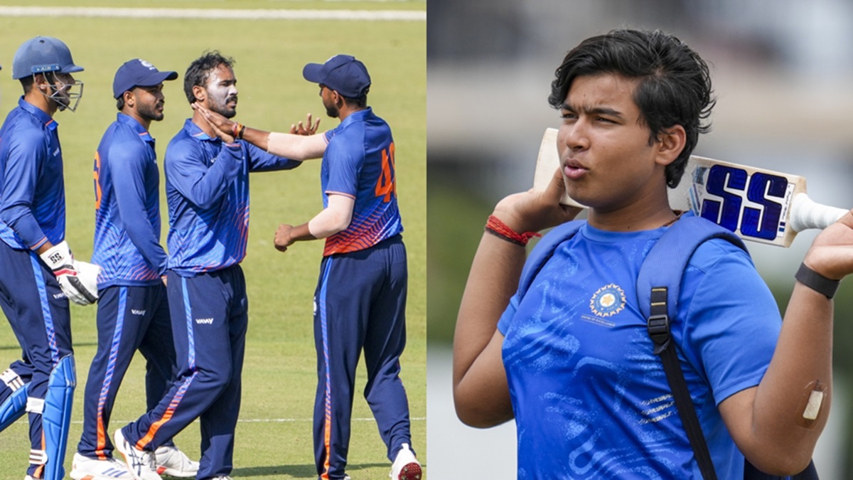 વૈભવ સૂર્યવંશી, વેદાંત ત્રિવેદી, અભિજ્ઞાન કુંડુ (wk), હરવંશ સિંહ (wk), યુવરાજ ગોહિલ, કનિષ્ક ચૌહાણ, ખીલન એ. પટેલ, નમન પુષ્પક, ડી. દિપેશ, હેનીલ પટેલ, કિશન કુમાર સિંહ, ઉધવ મોહન, એરોન જ્યોર્જ.